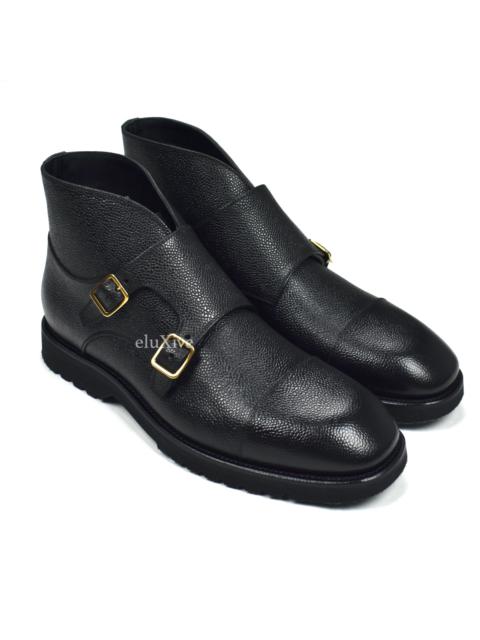 Tom Ford Black Pebbled Calf Leather Monk Strap Boots