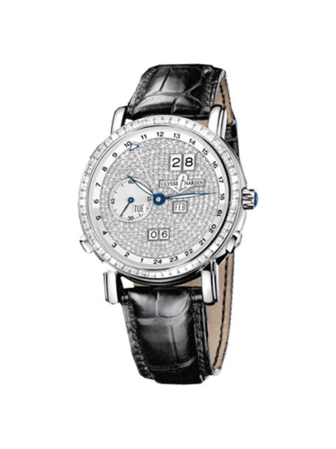 Ulysse Nardin GMT Perpetual Diamond Pave Dial Leather Strap Automatic Men's Watch 320-89BAG-091