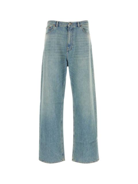 Valentino Men Light Blue Oversized Jeans With Logo Patch In Denim Man