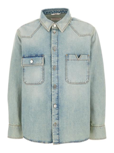 Valentino Men Light-Blue Denim Shirt With Logo In Cotton Man