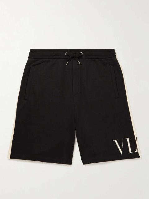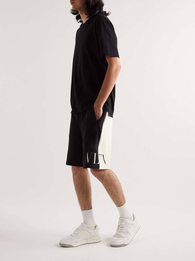 Wide-Leg Logo-Print Colour-Block Cotton-Jersey Drawstring Shorts