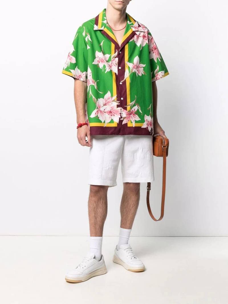 COTTON POPLIN BERMUDA SHORTS WITH VALENTINO FLOWER PORTRAIT PRINT