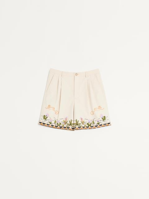 COTTON CANVAS BERMUDA SHORTS WITH FLORAL EMBROIDERY AND JACQUARD TRIMMINGS