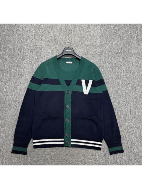 Valentino Striped Letter Logo Embroidered V-Neck Long Sleeve Sweater