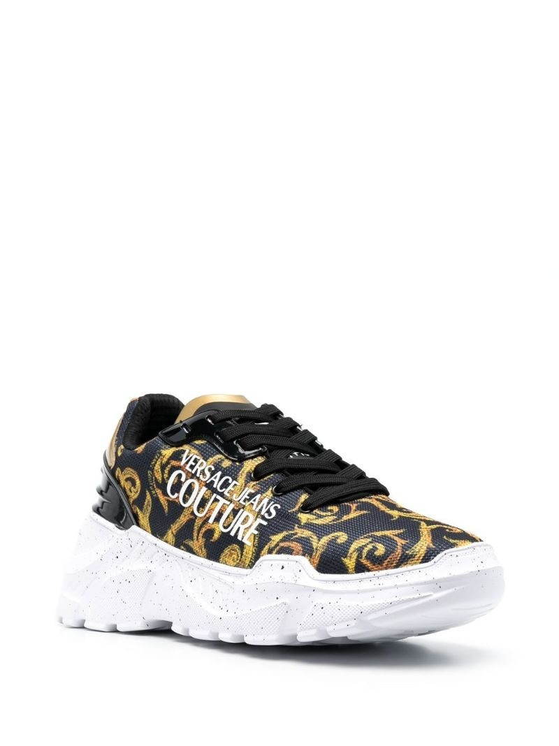 Elevate your style game with Versace Jeans Couture sneakers, a standout in our selection of luxury men's shoes. Each pair of sneakers from Versace Jeans Couture showcases iconic design elements blended with modern flair, perfect for fashion-forward individuals who value both comfort and bold aesthetics.