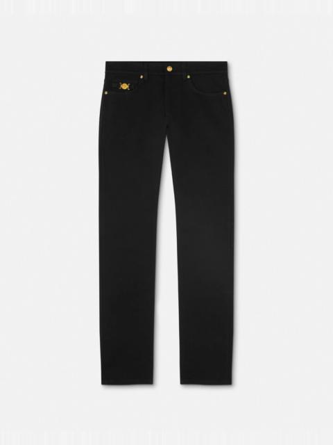 Explore the bold yet sophisticated style of Versace jeans within our premier collection of men's clothing. Each pair embodies Versace's iconic design ethos, blending high-fashion elements with everyday wearability. Crafted with precision and attention to detail, these jeans offer a perfect fit that enhances any modern wardrobe.