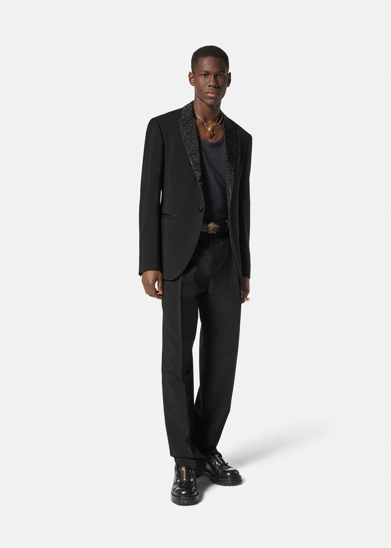 Elevate your formalwear with VERSACE suits, a pinnacle of our men’s clothing collection. Each VERSACE suit showcases impeccable craftsmanship and cutting-edge design, ideal for the discerning gentleman. Explore our premium assortment, featuring sharp tailoring and luxurious fabrics that exude confidence and sophistication.