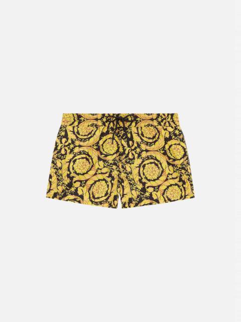 Upgrade your summer wardrobe with VERSACE swimwear, a standout in our exclusive men's clothing collection. VERSACE swimwear combines bold, iconic designs with premium materials, ensuring you make a stylish splash at any poolside or beach. Dive into our selection of VERSACE swim trunks and briefs, crafted for comfort and durability, featuring the brand's signature motifs.