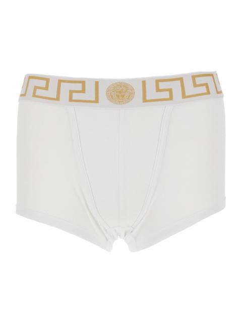 Versace Men White Slip With Elastic Waist And Greca Motif In Cotton Stretch Man