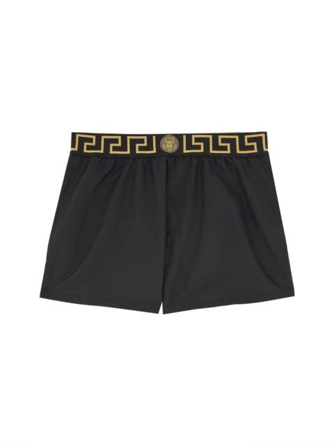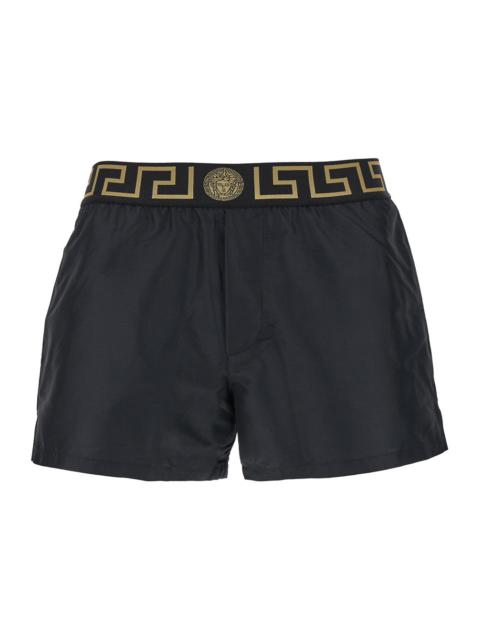Versace Men Black Swimsuit Shorts With Greca Detail In Tech Fabric Man