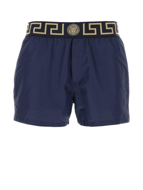 Versace Men Blue Swim Shorts With Elastic Waist And Medusa Plaque On The Front In Tech Fabric Man