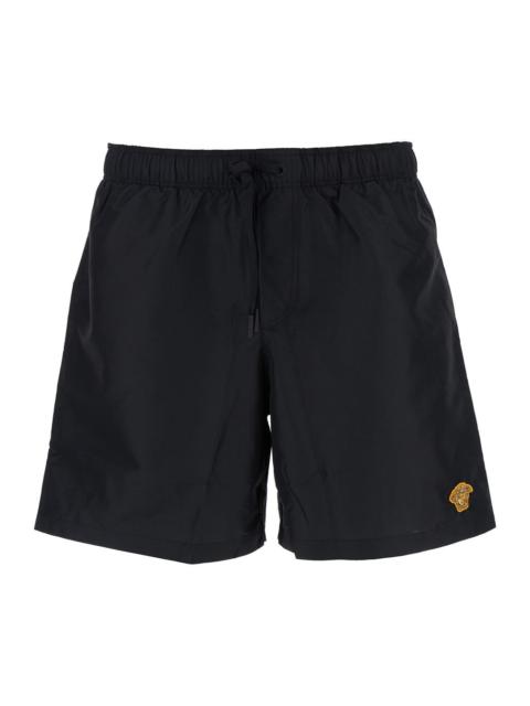Versace Men Black Swim Shorts With Elastic Drawstring Waist And Medusa Embroidery On The Front In Te
