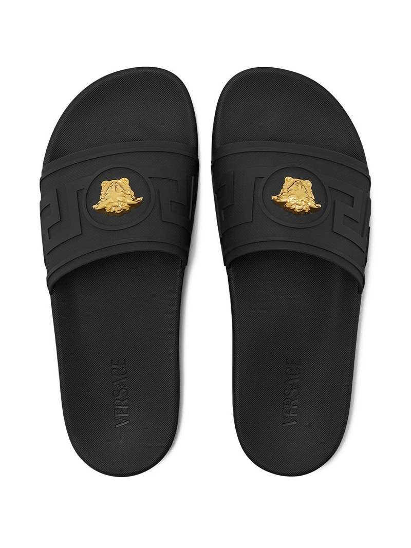 Step into sophistication with Versace sandals, a standout choice in our men's shoe collection. Versace embodies timeless luxury and innovative design, offering sandals that perfectly blend comfort with high fashion. Each pair showcases the iconic Medusa emblem and superior craftsmanship, making them an essential addition to your wardrobe.