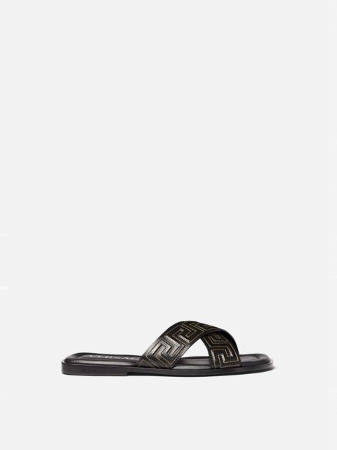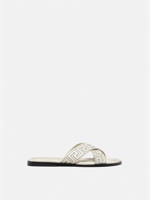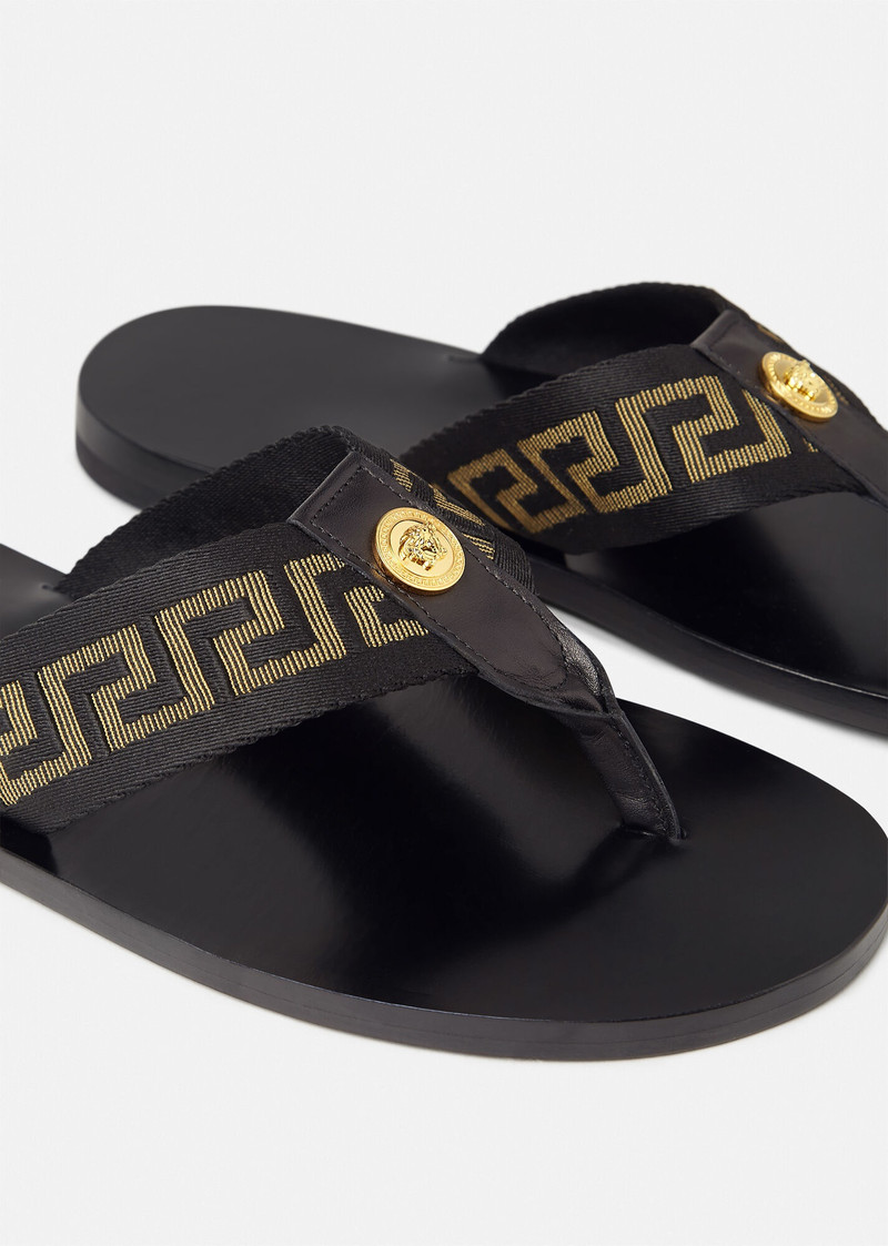 Step into sophistication with Versace sandals, a standout choice in our men's shoe collection. Versace embodies timeless luxury and innovative design, offering sandals that perfectly blend comfort with high fashion. Each pair showcases the iconic Medusa emblem and superior craftsmanship, making them an essential addition to your wardrobe.