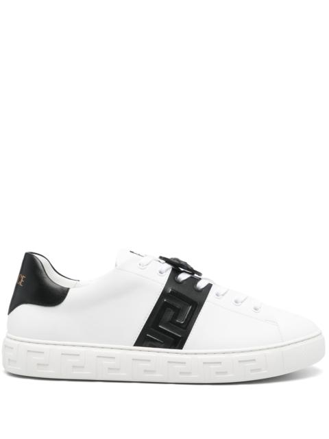 Step into the world of luxury with men's shoes and sneakers from Versace. Known for its bold and opulent designs, Versace sneakers encapsulate the perfect blend of comfort and high-end style. Whether you're updating your wardrobe or seeking a standout piece for special occasions, our collection of Versace sneakers and shoes offers something unique for every discerning gentleman. Each pair promises to elevate your fashion game with iconic Medusa logos, intricate details, and top-quality craftsmanship.