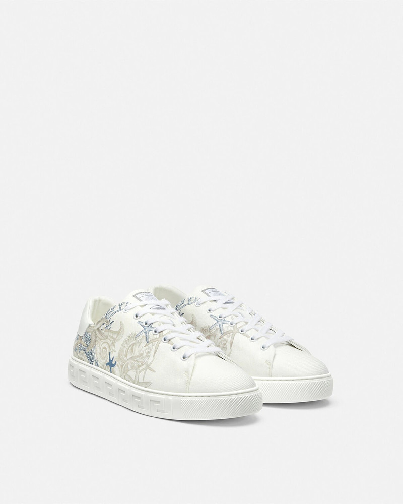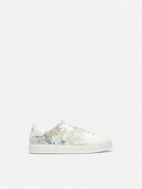 Step into the world of luxury with men's shoes and sneakers from Versace. Known for its bold and opulent designs, Versace sneakers encapsulate the perfect blend of comfort and high-end style. Whether you're updating your wardrobe or seeking a standout piece for special occasions, our collection of Versace sneakers and shoes offers something unique for every discerning gentleman. Each pair promises to elevate your fashion game with iconic Medusa logos, intricate details, and top-quality craftsmanship.