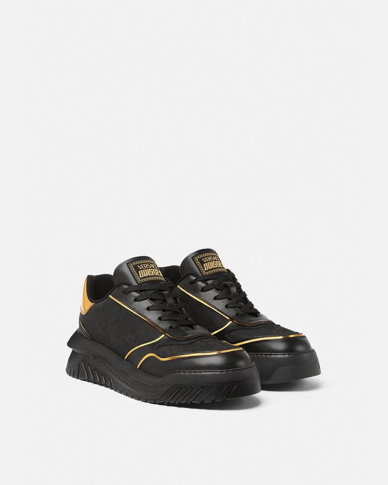 Step into the world of luxury with men's shoes and sneakers from Versace. Known for its bold and opulent designs, Versace sneakers encapsulate the perfect blend of comfort and high-end style. Whether you're updating your wardrobe or seeking a standout piece for special occasions, our collection of Versace sneakers and shoes offers something unique for every discerning gentleman. Each pair promises to elevate your fashion game with iconic Medusa logos, intricate details, and top-quality craftsmanship.