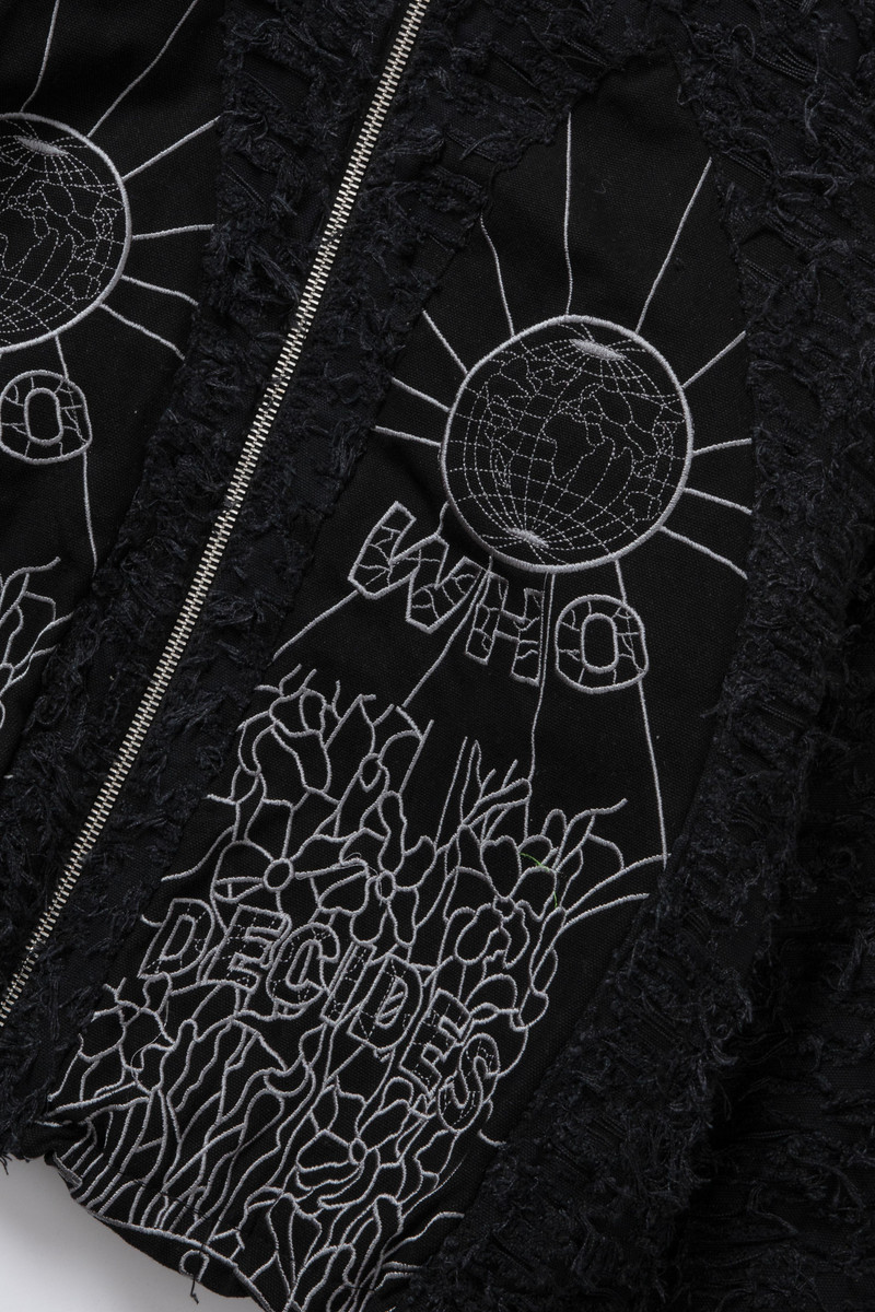 WHO DECIDES WAR, the brainchild of designer Everard Best, in collaboration with creative partner Téla D’Amore, is a New York-based fashion label that has redefined contemporary streetwear. Founded in 2016, the brand infuses military-inspired aesthetics with a DIY design ethos. Recognized for its iconic denim silhouettes and graphic stained-glass motifs, the label's distinct sartorial language pushes the boundaries of streetwear. Expert garment distressing and multi-phase hand-dyeing are executed with meticulous attention to detail, creating visually rich collections that include elaborately decorated denim, watercolor-printed T-shirts, and deconstructed jackets.