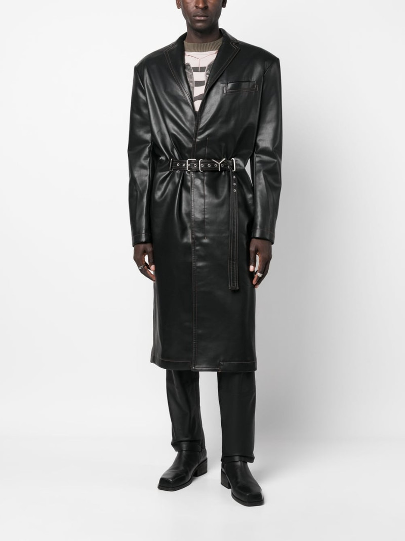 belted faux-leather coat