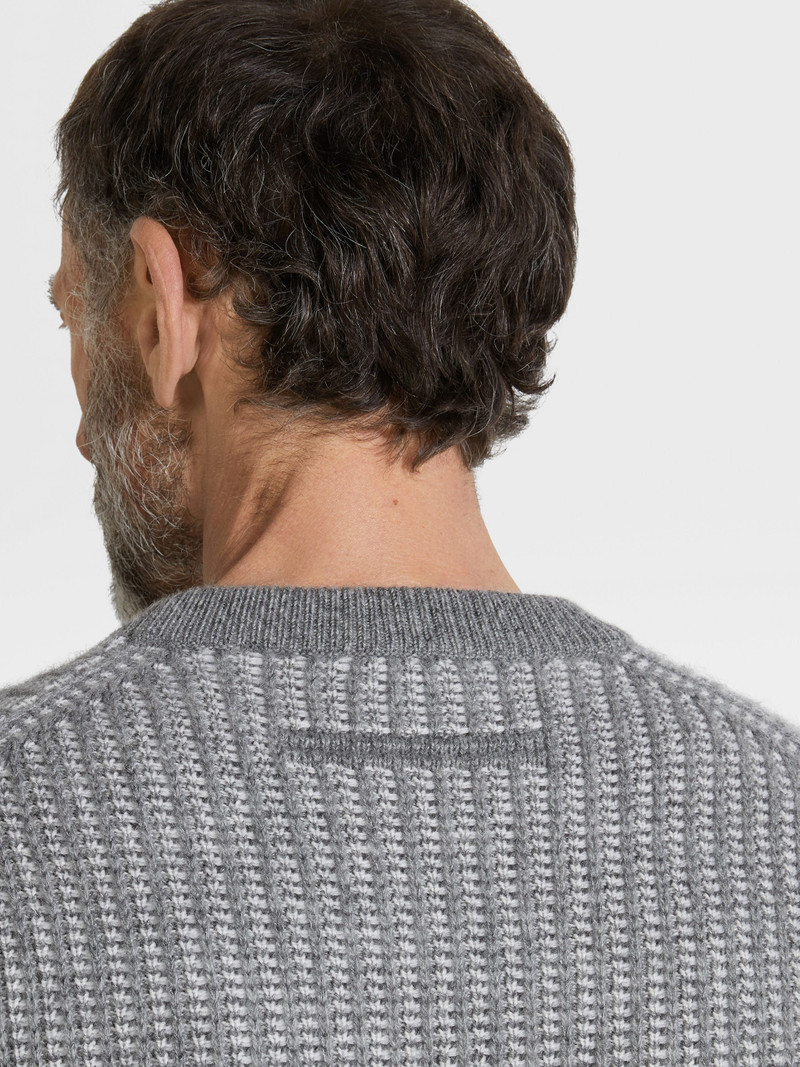 GREY AND WHITE CASHMERE MOHAIR AND SILK CREWNECK