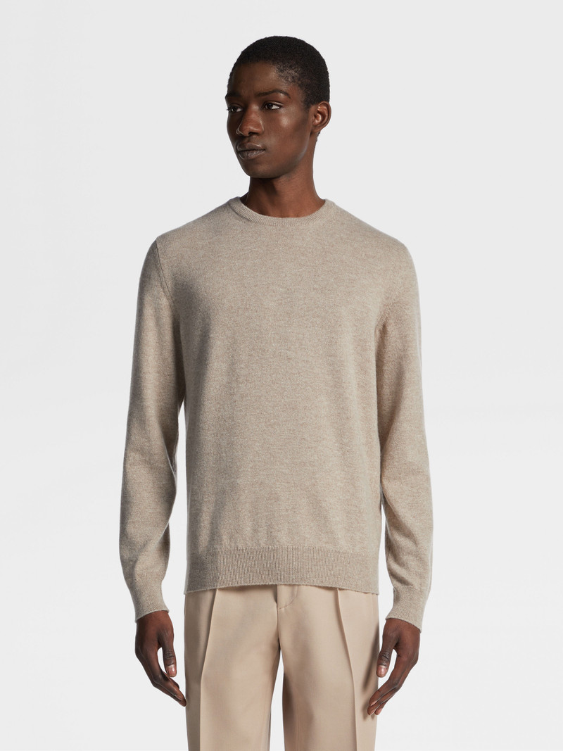 DARK BEIGE MÉLANGE CASHSETA CREWNECK
