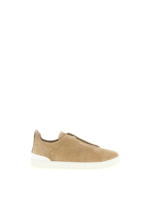 ZEGNA Triple Stitch Beige Leather Low Top Sneakers New (Men'