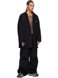 Cotton poplin overshirt. · Spread collar · Concealed button closure · Logo patch at chest · Patch pockets · Vented side seams · Dropped shoulders · Raw edge at cuffs · Adjustable button tab at cuffs · Logo graphic printed at back Supplier color: Black 100% cotton. Made in Estonia 251843M192003