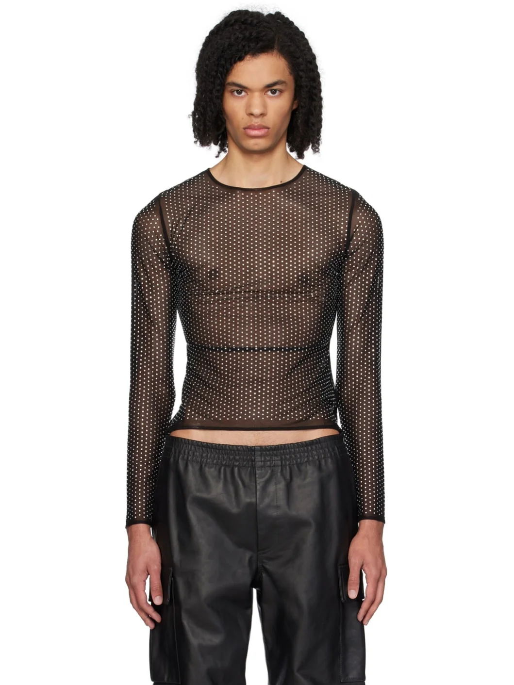 Sheer stretch nylon mesh T-shirt. · Crystal-cut detailing throughout · Crewneck Supplier color: Black
