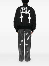 logo-print bomber jacket Highlights - Black - Logo print at the chest - Logo print to the rear - Baseball collar - Long sleeves - Sleeve zip pocket - Ribbed trim - Two press-stud fastening side pockets - Straight hem - Front zip fastening - When buying this unisex item, keep in mind that it is graded in standard men's sizing. Imported Composition Outer: Polyester 100%, Polyurethane 100% Lining: Polyester 100% SIZE & FIT Model measurements Height 5 ft 11 in(1.8 m) Bust/Chest 31.49 in(80 cm) Hips 36.61 in(93 cm) Waist 24.4 in(62 cm) FittingInformation This piece is unisex – if you usually select men's sizing expect a loose fit throughout; if you usually select women's sizes, expect an oversized fit The ribbed hem offers a close, comfortable fit Made from a padded non-stretch fabric, giving it no natural elasticity