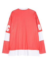 Lax layered sports T-shirt Highlights - Bright red/white - Organic cotton - Layered design - Mesh design - Crew neck - Logo print at the chest - Drop shoulder - Long sleeves - Straight hem Imported Composition Polyester 100%, Cotton 100%