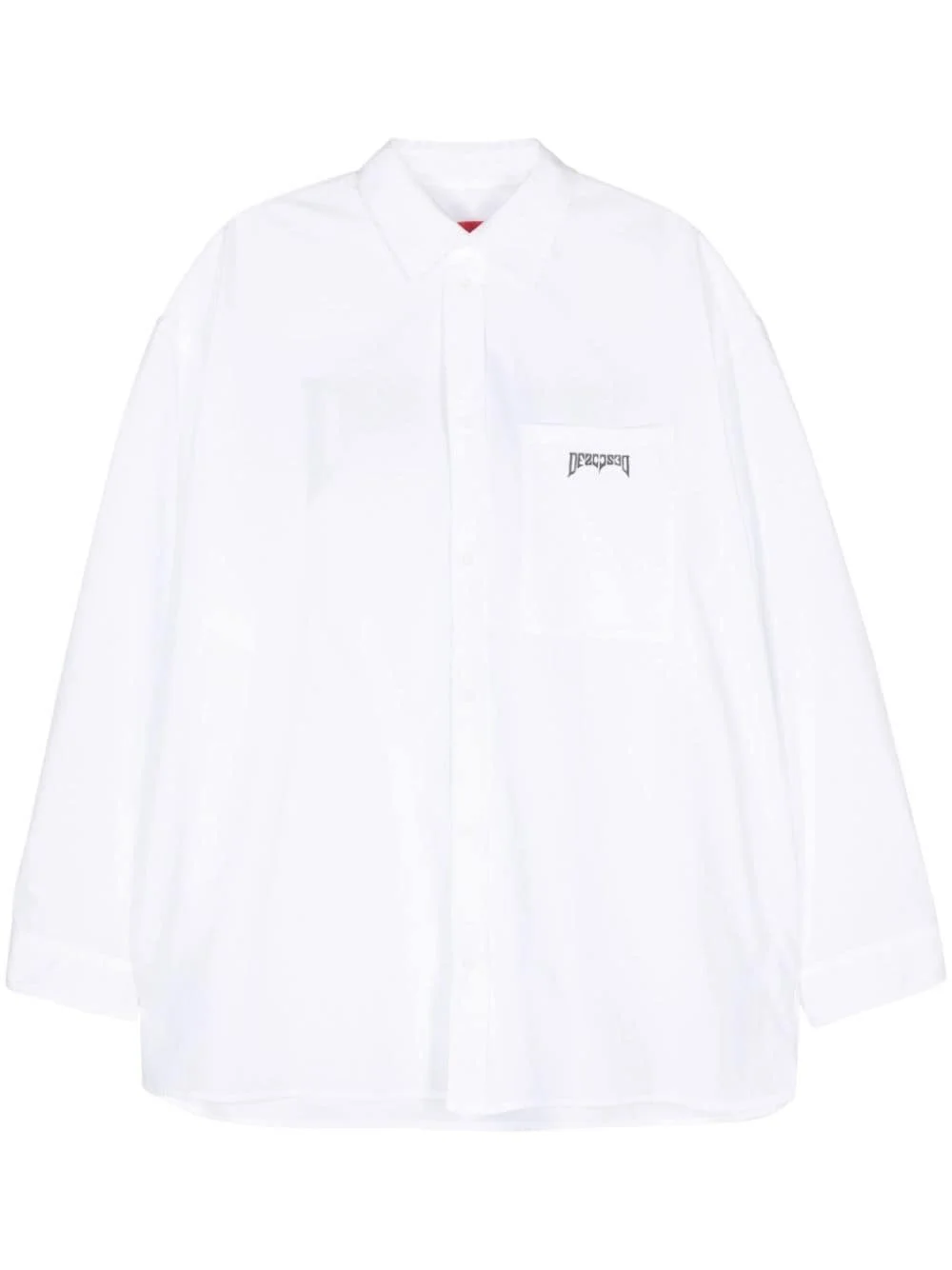 logo-print cotton shirt Highlights - Optical white - Cotton - Voile - Logo print at the chest - Classic collar - Front button fastening - Drop shoulder - Long sleeves - Buttoned cuffs - Chest patch pocket - Curved hem Imported Composition Cotton 100%