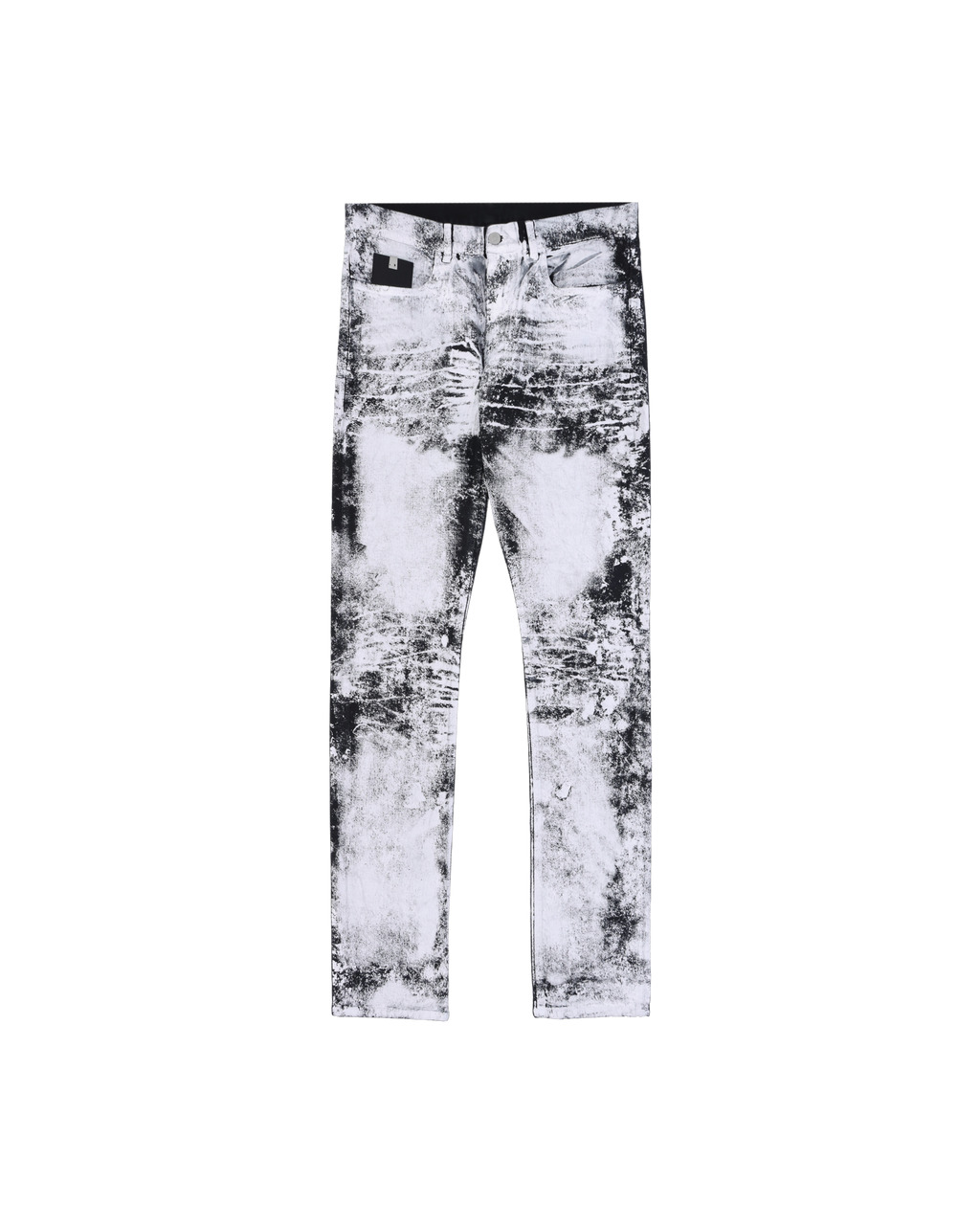 Five pocket skinny jean in treated denimwith leather and metal lightercap detail coin pocket. Color: Black/ White - Made in Italy - 98% Cotton, 2% Elastane - True to size