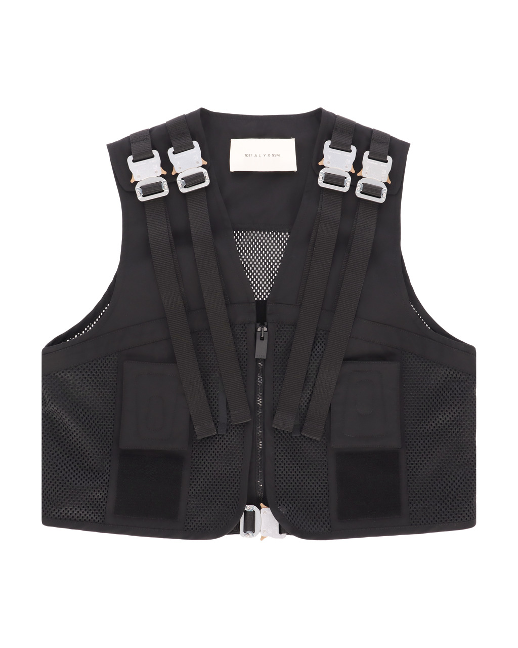 Panelled polyester mesh vest; velcro trim throughout. Color: Black - Self Fabric: 70% Polyester, 30% Polyamide