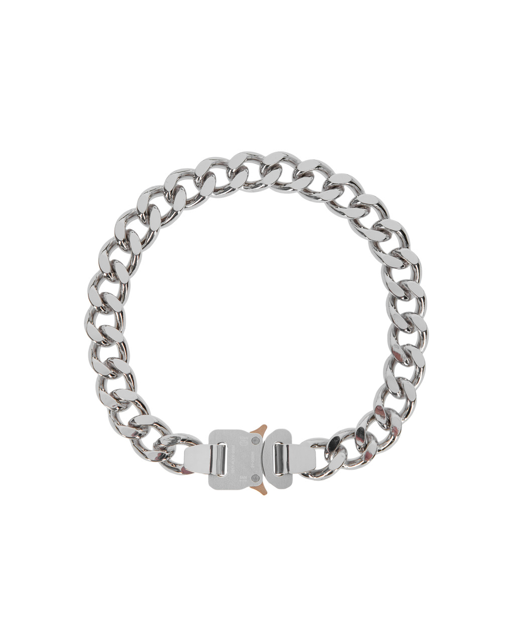 Necklace with signature rollercoaster buckle closure. Color: Silver - Self: 99% Aluminum + 1% Brass