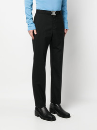 clip-buckle straight leg trousers black clip-lock fastening silver-tone hardware straight hem two side slit pockets two rear welt pockets Made in Italy Composition Outer: Virgin Wool 54%, Polyester 45%, Elastane 1% Lining: Cotton 100% SIZE & FIT Model measurements Height 6 ft 2 in(1.87 m) Bust/Chest 35.82 in(91 cm) Hips 35.43 in(90 cm) Waist 27.95 in(71 cm) FittingInformation This piece fits true to size. We recommend you get your regular size Cut for a slim fit Made with a mid-weight stretch fabric Washing instructions Dry Clean Only