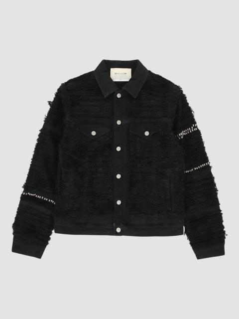 Part of the Blackmeans collaboration. A classic fit denim jacket with signature shredding technique and embroidered details. Color: Black - Made in Italy - 98% Cotton 2% Elastane - True to size - Model is wearing size M