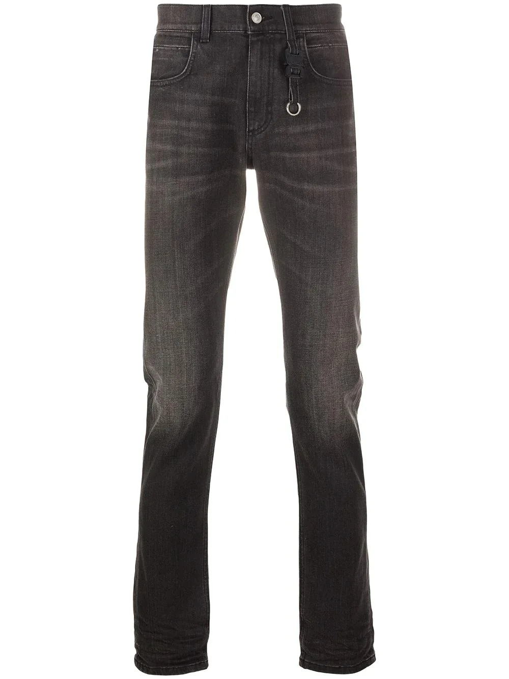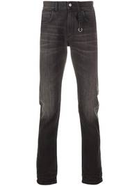 denim straight leg jeans Black cotton blend denim straight leg jeans from 1017 ALYX 9SM featuring a waistband with belt loops, a five pocket design, a button and zip fly and a hanging key fob. Made in Italy Composition Cotton 98%, Polyurethane 2% SIZE & FIT Model measurements Height 6 ft 2 in(1.89 m) Bust/Chest 37.79 in(96 cm) Hips 37 in(94 cm) Waist 29.92 in(76 cm) FittingInformation This piece fits true to size. We recommend you get your regular size Cut for a slim fit Made with a mid-weight stretch fabric Washing instructions Dry Clean Only