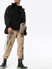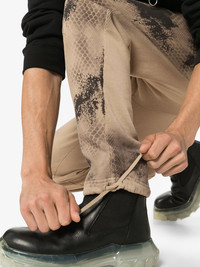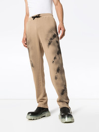 abstract printed track pants Brown cotton abstract printed track pants from 1017 ALYX 9SM featuring an elasticated drawstring waist, a stylized print, side slit pockets, a back welt pocket, tie cuffs, a relaxed fit and a graphic printed design to the front. Made in Italy Composition Outer: Cotton 100% Lining: Cotton 95%, Spandex/Elastane 5% SIZE & FIT Model measurements Height 6 ft 1 in(1.85 m) Bust/Chest 35.82 in(91 cm) Hips 37.79 in(96 cm) Waist 29.13 in(74 cm) Measurement WAIST 29.92 in(76 cm) HIPS 43.3 in(110 cm) INSIDE LEG 30.31 in(77 cm) Hem Width 6.29 in(16 cm) FRONT RISE 12.99 in(33 cm) BACK RISE 18.89 in(48 cm) FittingInformation This piece fits true to size. We recommend you get your regular size Cut for a relaxed fit Made with a mid-weight stretch fabric Washing instructions Machine Wash