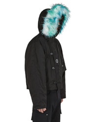 Nylon parka with embroidered circle 'A' on front and Mark Flood graphic along the back. Color: Black/White - Self: 100%Pl - Lin: 56%Pl, 44%Vi - Pad: 100%Pl - Rib: 89%Pc, 8%Pl, 3%Ea - Pocket Lin: 100%Pl - Fake Fur: 80%Pc, 20%Pl