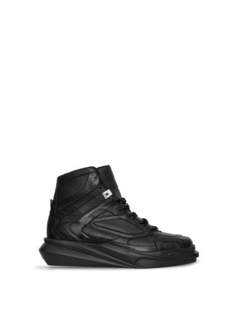 High top sneaker featuring leather and mesh panel inserts as well as signature metal lightercap detail. Color: Black - Made in Italy - UPPER: 100 % Calf - LINING: 62% Polyester, 38% Calf - SOLE: 100% EVA Rubber - True to size