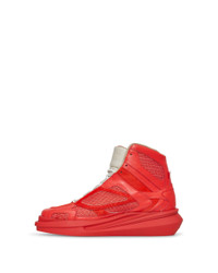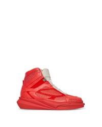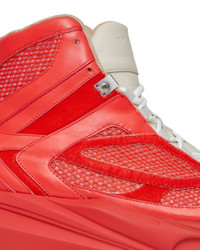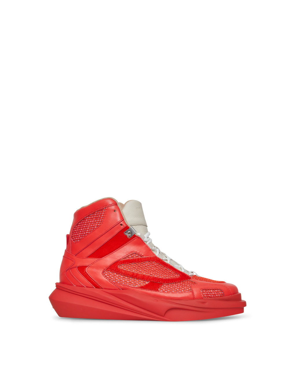 High top sneaker featuring leather and mesh panel inserts as well as signature metal lightercap detail. Color: Red - Made in Italy - UPPER: 100 % Calf - LINING: 62% Polyester, 38% Calf - SOLE: 100% EVA Rubber - True to size
