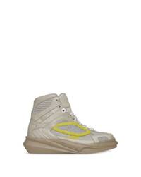 High top sneaker featuring leather and mesh panel inserts as well as signature metal lightercap detail. Color: Sand / Yellow - Made in Italy - UPPER: 100 % Calf - LINING: 62% Polyester, 38% Calf - SOLE: 100% EVA Rubber - True to size