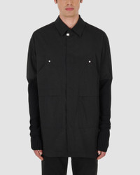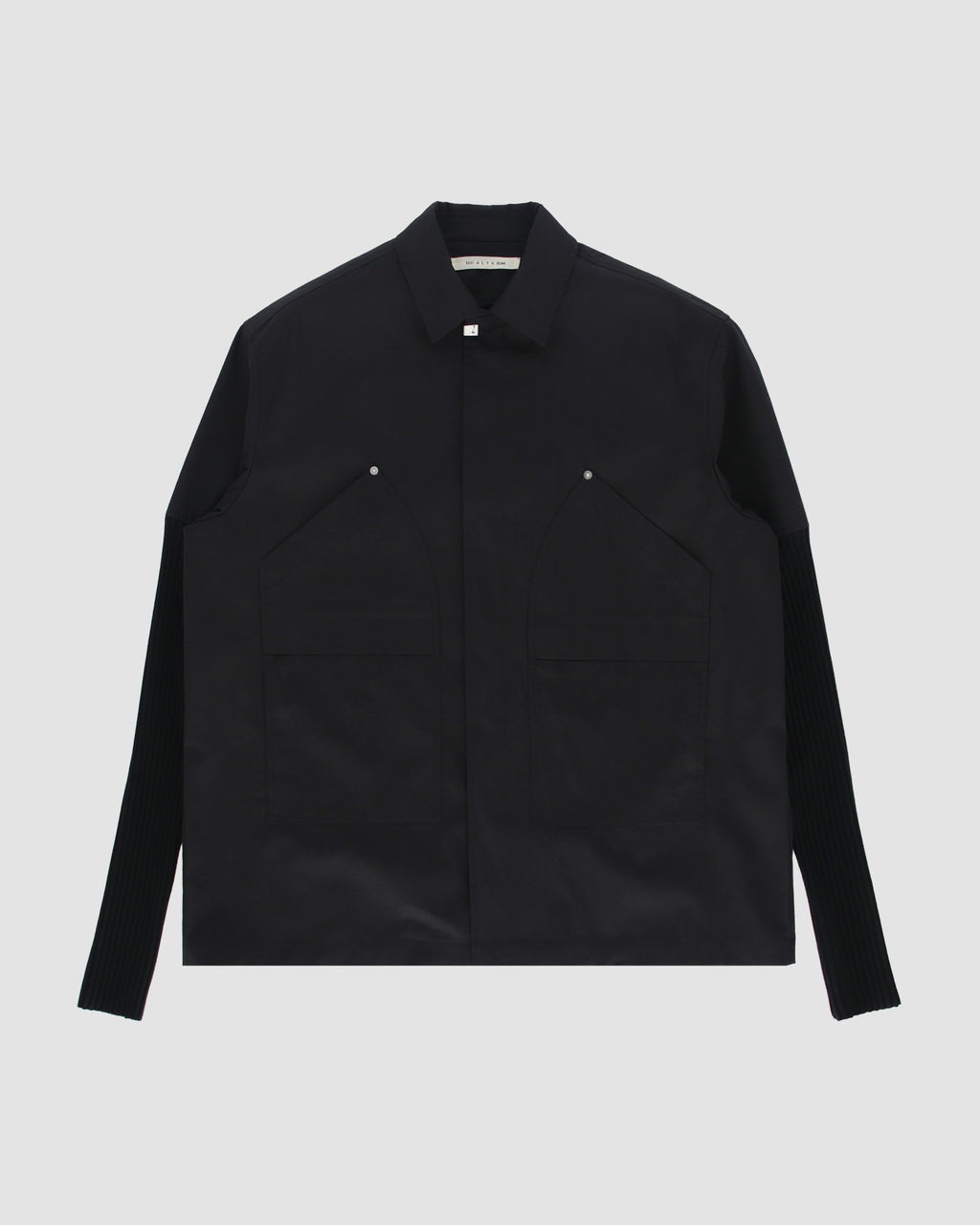 Cotton jacket with knitted sleeve. Color: Black - Made in Italy - 100% Cotton - Knitted Details: 89% Viscose, 8% Polyamid, 3% Elastane - True to size - Model is wearing size M