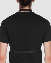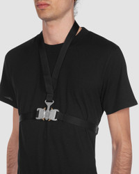 Harness with nylon webbing straps and tricon anodized aluminum rollercoaster buckle with lasered logo as clasp. Color: Black - Made in Italy - 100% Nylon