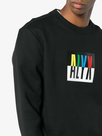 Logo crew neck sweatshirt Black Logo crew neck sweatshirt from ALYX featuring a ribbed crew neck, long sleeves, a ribbed hem and cuffs, a printed logo to the front and a straight hem. This item is from the ALYX Visual Collection. Made in Italy Composition Cotton 50%, Polyester 50% SIZE & FIT Model measurements Height 6 ft 2 in(1.89 m) Bust/Chest 36.22 in(92 cm) Hips 35.82 in(91 cm) Waist 28.74 in(73 cm) Washing instructions Machine Wash