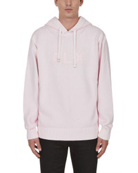 Cotton knit hooded sweater with graphic logo detail. Color: Pink