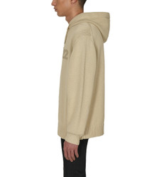 Knitwear treated hoodie with front logo and signature lightercap detailing. Color: Beige - Made in Italy - 100% Cotton - True to size - Model is wearing size M