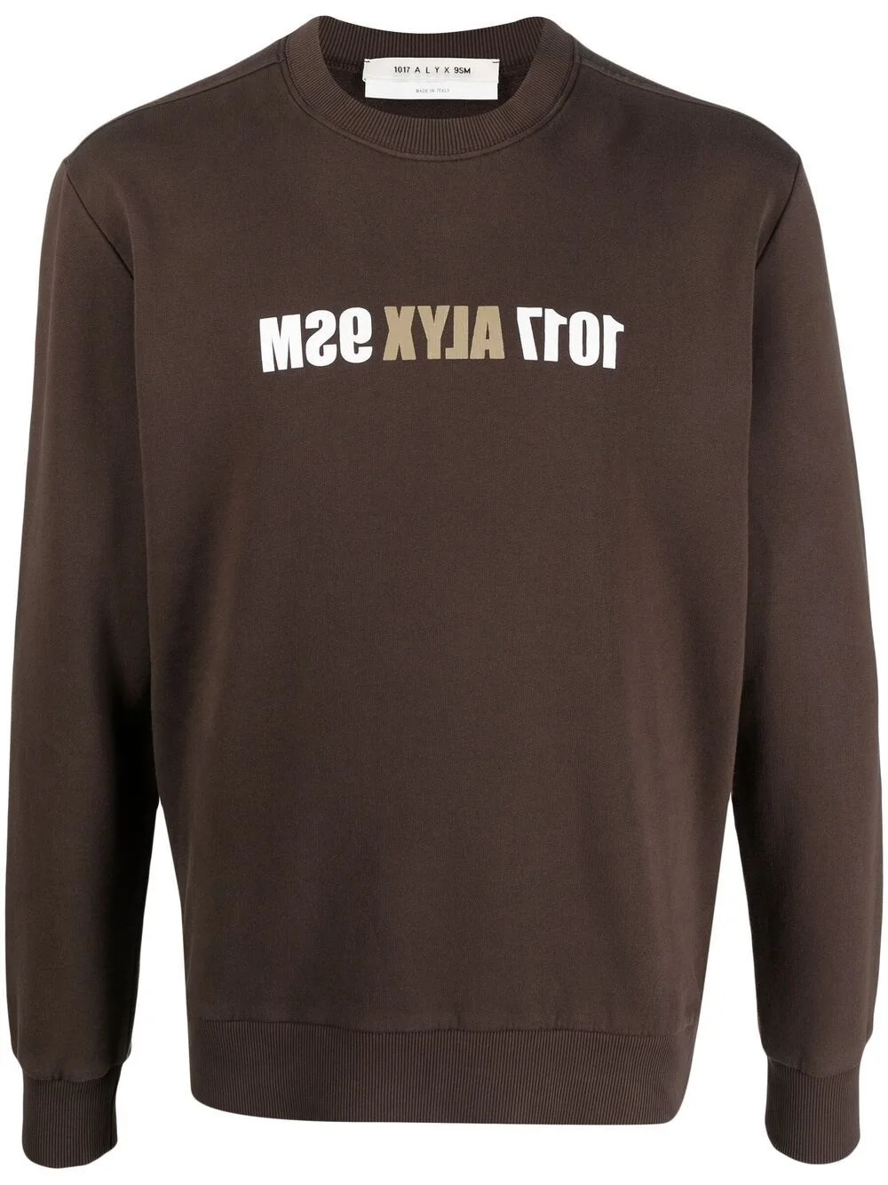 logo-print sweatshirt brown cotton logo print to the front ribbed detailing round neck long sleeves straight hem Made in Italy Composition Cotton 100% SIZE & FIT Model measurements Height 6 ft 2 in(1.89 m) Bust/Chest 35.43 in(90 cm) Hips 36.61 in(93 cm) Waist 28.74 in(73 cm) Measurement CHEST 45.66 in(116 cm) SLEEVE LENGTH 26.37 in(67 cm) Shoulder Width 19.29 in(49 cm) FittingInformation This piece fits true to size. We recommend you get your regular size Cut for a relaxed fit Made with a mid-weight fabric Washing instructions Machine Wash