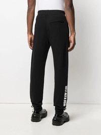 logo print track trousers black/white cotton logo print to the side high waist elasticated waistband two side slit pockets rear welt pocket straight leg tie-fastening ankle strap Made in Italy Composition Cotton 100% SIZE & FIT Model measurements Height 6 ft 1 in(1.86 m) Bust/Chest 36.61 in(93 cm) Hips 36.61 in(93 cm) Waist 29.92 in(76 cm) FittingInformation This piece fits true to size. We recommend you get your regular size Cut for a slim fit Made with a mid-weight fabric Washing instructions Machine Wash