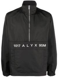 logo-print windbreaker jacket 1017 Alyx 9SM stays true to its sporty-inspired aesthetic with this windbreaker jacket. Designed in a black hue, this piece features a practical branded front flap pocket and a high neck. Made in Italy Composition Outer: Polyamide 55%, Cotton 45% Lining: Polyester 100% SIZE & FIT Model measurements Height 6 ft 2 in(1.88 m) Bust/Chest 37.79 in(96 cm) Hips 38.58 in(98 cm) Waist 29.52 in(75 cm) FittingInformation This piece fits true to size. We recommend you get your regular size Cut for a loose fit Made with a mid-weight non-stretch fabric